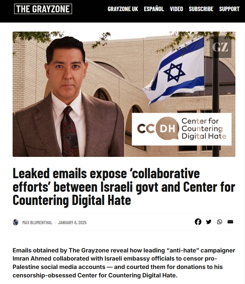 The GrayZone has reported that the CCDH was set up in partnership with Israel.