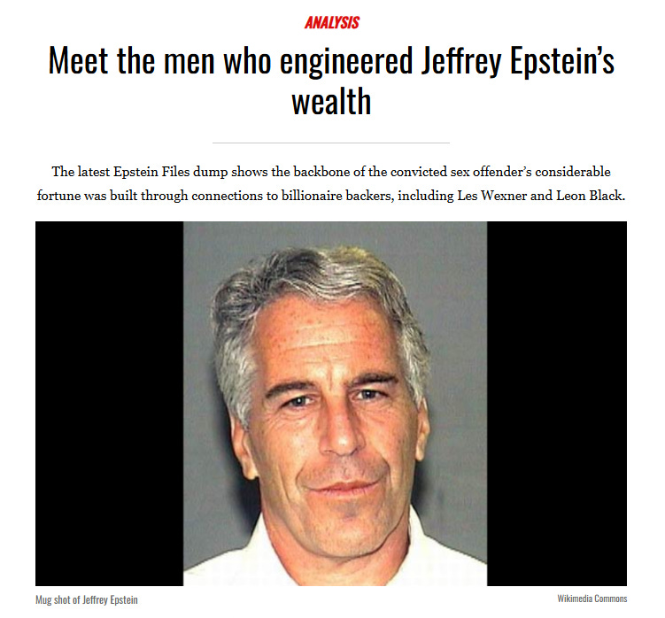 The Epstein Files reveal that we are paying taxes to the Epstein Class, whose business model is to create and monetise practically every crisis which plagues our lives.