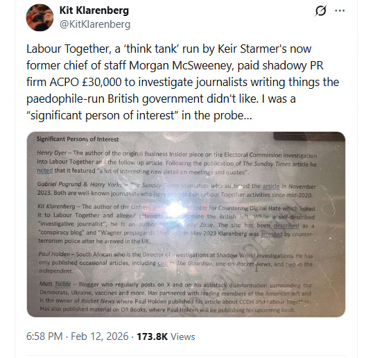 This rot is so profound that I can include only some of the evidence I have discovered in the last two weeks’ I have spent investigating the impact of the Epstein Files - and my years of research into the rotten State of Britain.