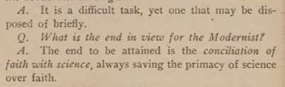 In this series I hope to present examples from our times which illustrate the modernist errors described in Pascendi Dominici Gregis, the 1907 masterpiece of Pope St Pius X, transcribed as A Catechism of Modernism.