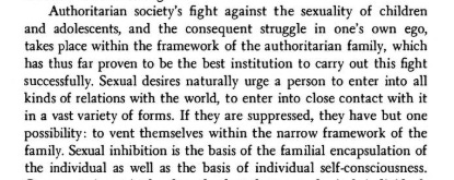 Reich wrote this in the full knowledge of the Weimar Republic - whose Berlin hosted hundreds of child sex gangs, and where rich perverts could order children of either sex to rape from a variety of bars dedicated to delivering this liberating service.