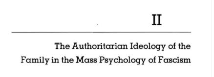 Reich is significant to us for his hatred of the family. He said in his Mass Psychology of Fascism that the family was a factory that produced fascists.
