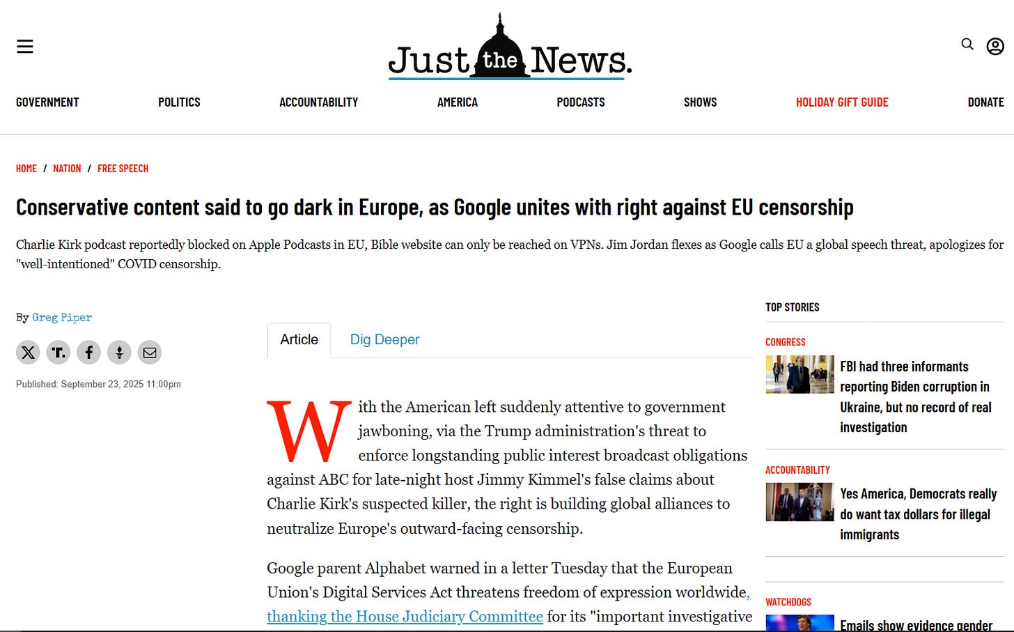 Astonishingly, Google has joined the fight to “unite with the right” against EU censorship, as Just The News reported: