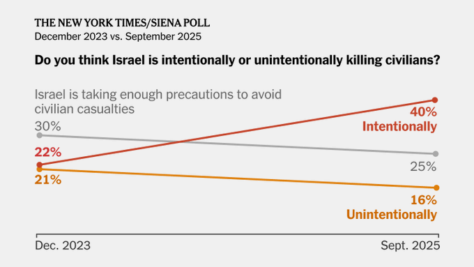 43% in a YouGov poll believed Israel is “committing genocide”