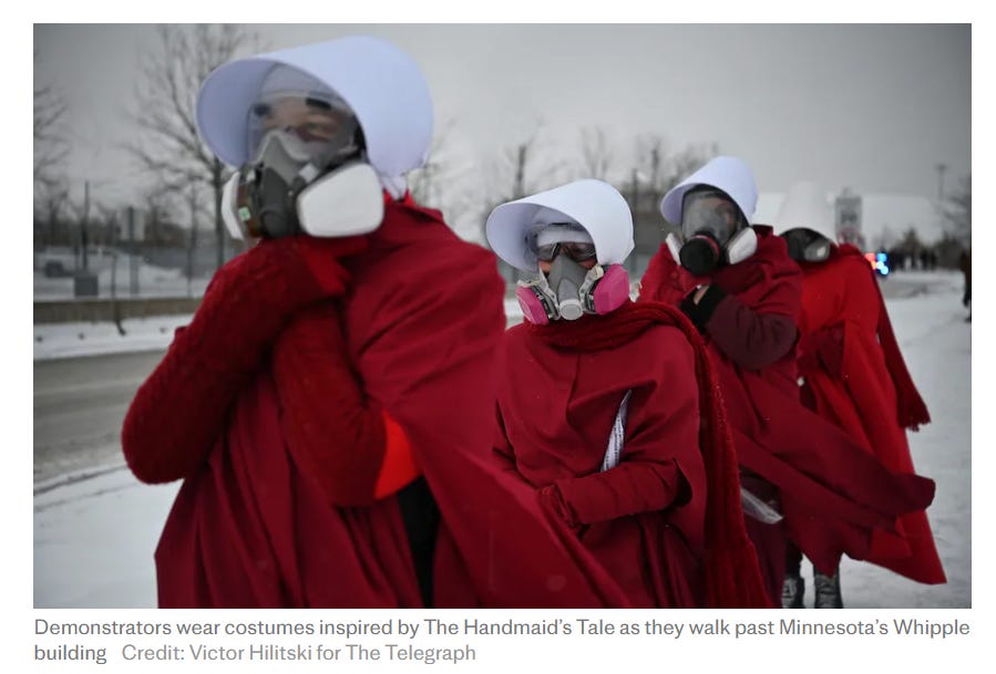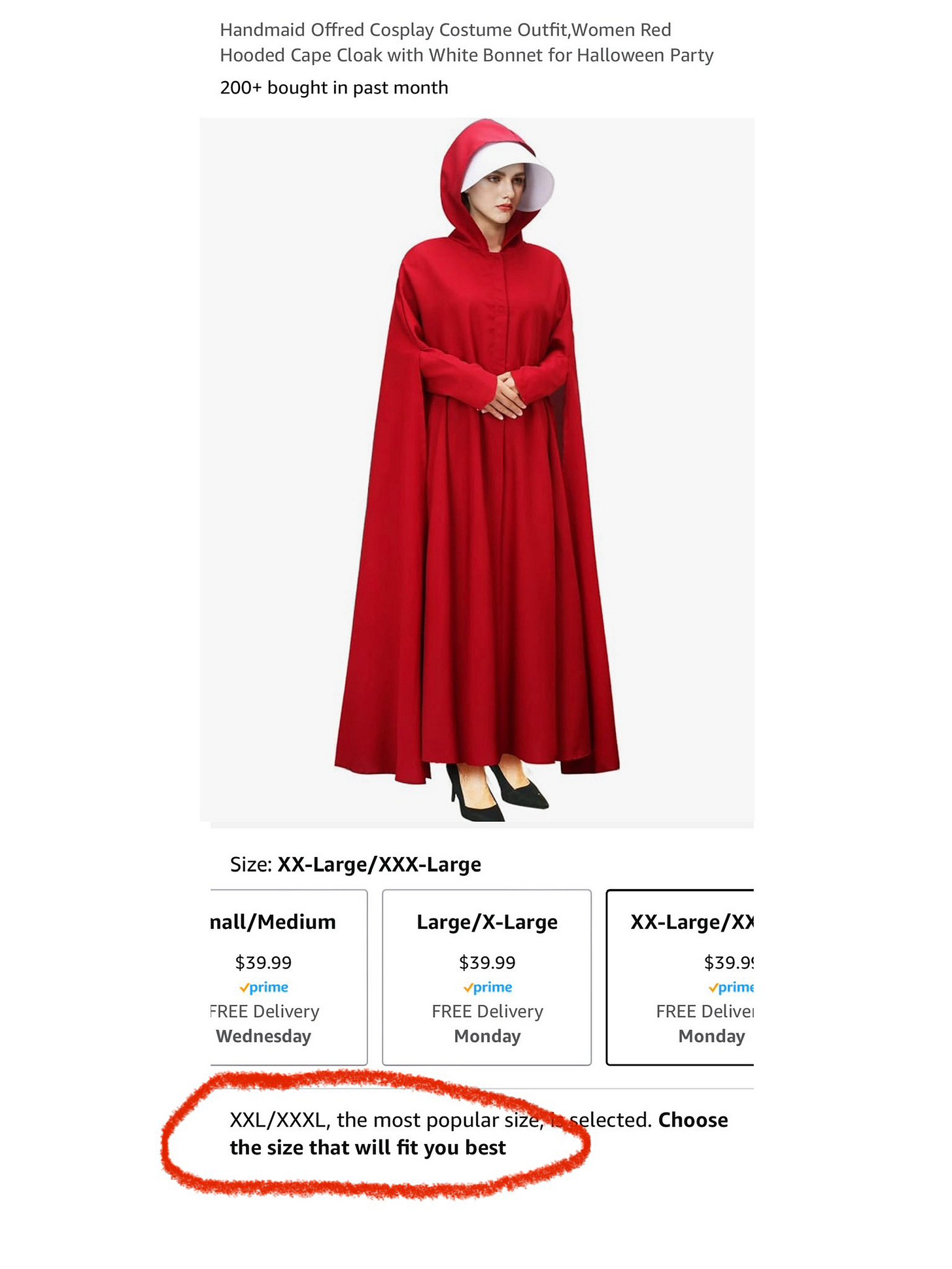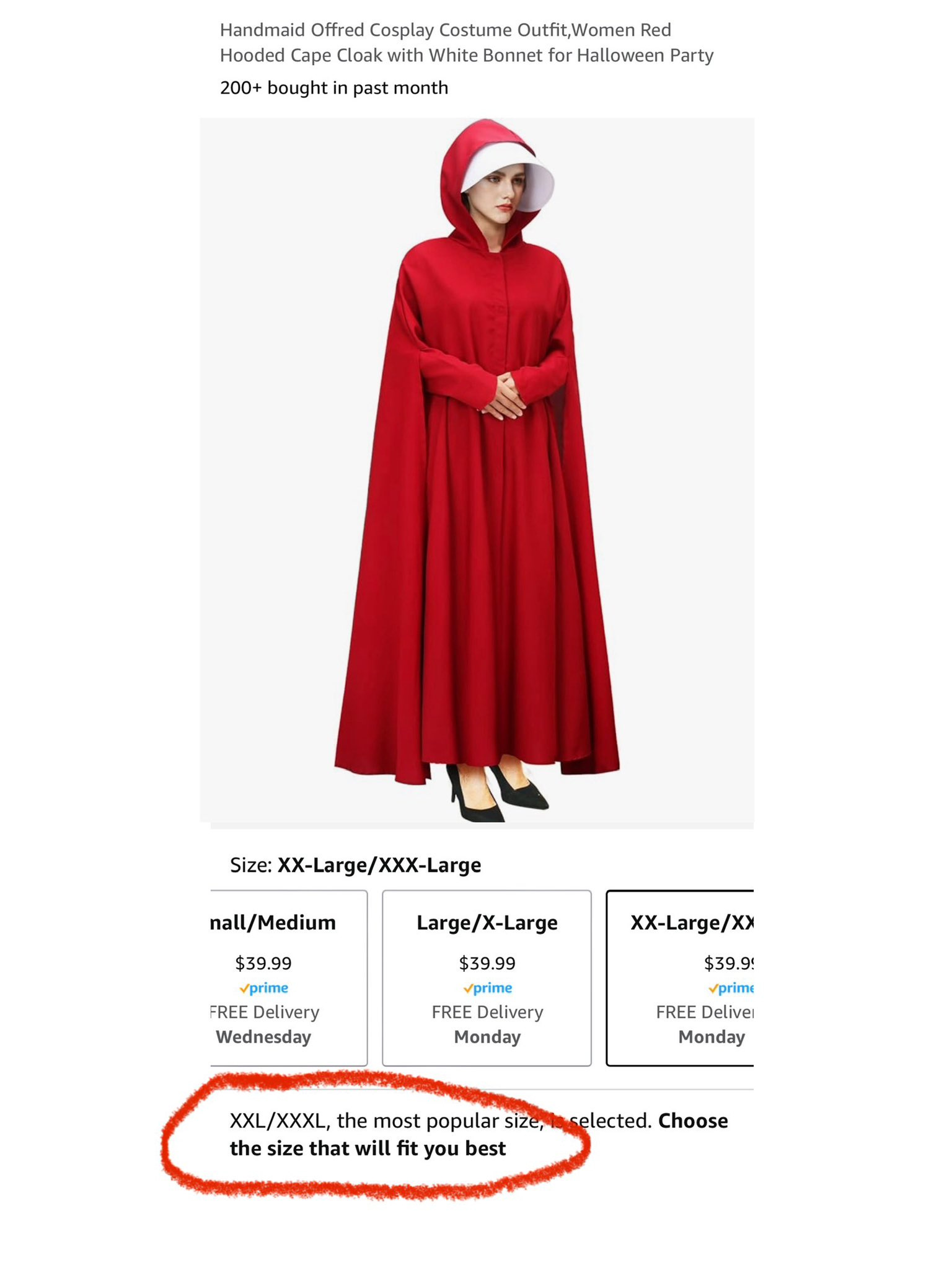 Ha! That's hilarious that XXL+ is the most popular Handmaid costume size. Looking at footage of the demon-infused frontline shock troops in the Left's war against nature, that holds as true. These individuals were given the choice: God or Mammon. They chose donuts...