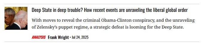 If you’re interested in the conspiracy against Trump led by the “Shadow Men”, see the excellent work of Richard C. Cook in his Our Country: Then and Now - summarised in Mr Cook’s recent SubStack post here.