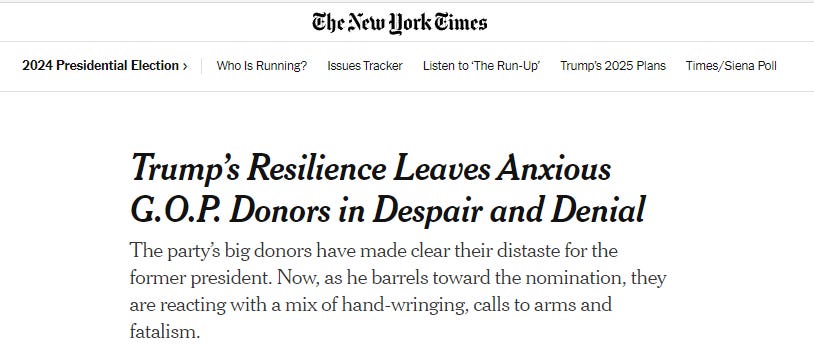 De Santis’ wealthiest donor has switched his allegiance to Trump. Unlike Trump, De Santis does not have 3.5 billion dollars of his own.