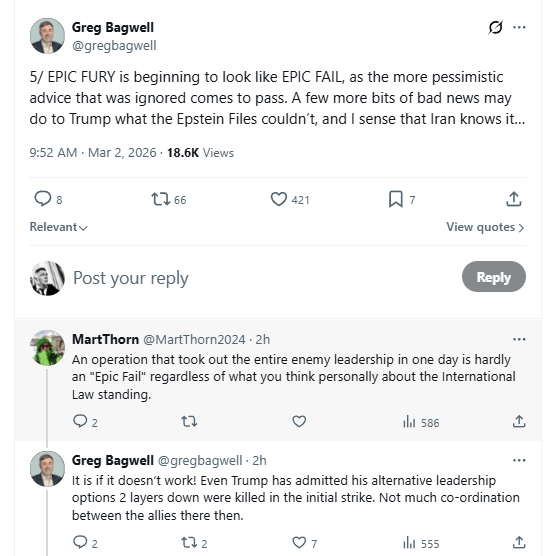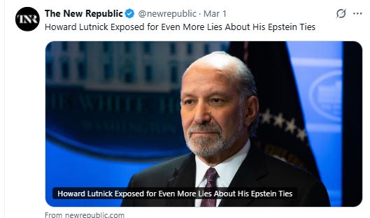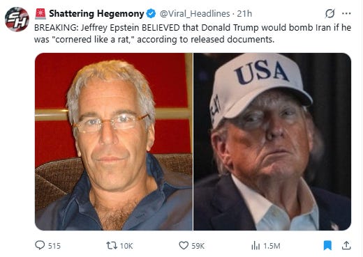 The power of the Epstein class is on display in starting this war. How it ends may well decide the fate of this gang of depraved crooks for whom money and power is everything, and to whom nothing is sacred.