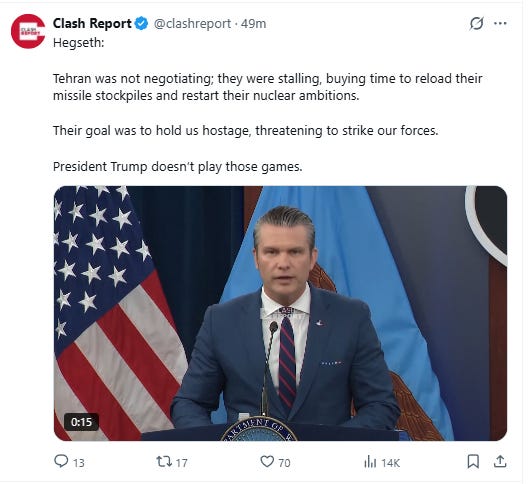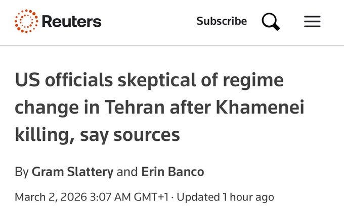 Regime change has failed, and so they now say that was never the point. Hegseth actually said in the above video that the regime has already changed. What is America doing?