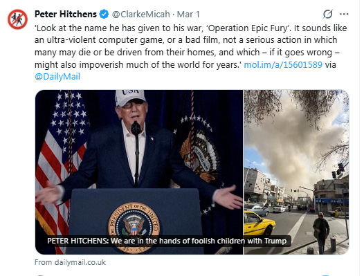 The war has been named “Operation Epic Fury” by the US administration, whose chief negotiator Jared Kushner was taught at Harvard by Jeffrey Epstein’s lawyer Alan Dershowitz.