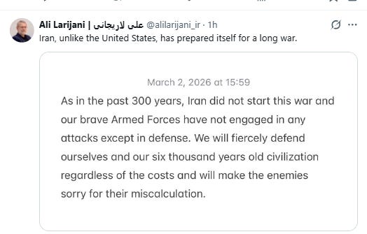 The Iranians have said they are prepared to wage war for years and their initial strategy is obviously aimed at destroying US regional warfighting capability to do exactly that.