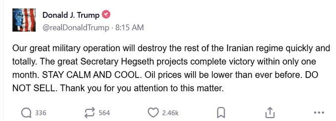 This plan has completely failed. Iran is not “calibrating” - as it did last time. This is all out war. Donald Trump has no control and the strategy he came up with has predictably collapsed immediately.