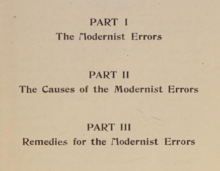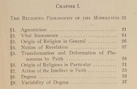 To do so I show extracts from A Catechism of Modernism, which was published in 1908 as a guide to Pascendi.
