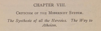 This chapter of a Catechism of Modernism explains why Pope St Pius X described Modernism as “the synthesis of all the heresies”.