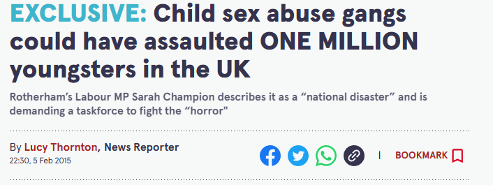 This was the figure given by the Labour MP for Rotherham in 2015. With almost ten years having passed, that figure is certainly exceeded by now. Police, press and politicians have all been complicit in this.