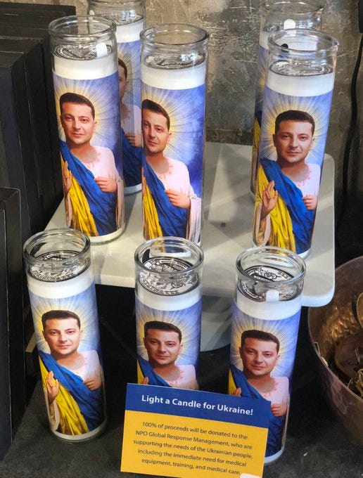 In like fashion the leader of the world’s most corrupt nation, himself a placeman of an oligarch, has been attached to heroic and even saintly imagery.