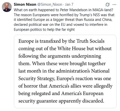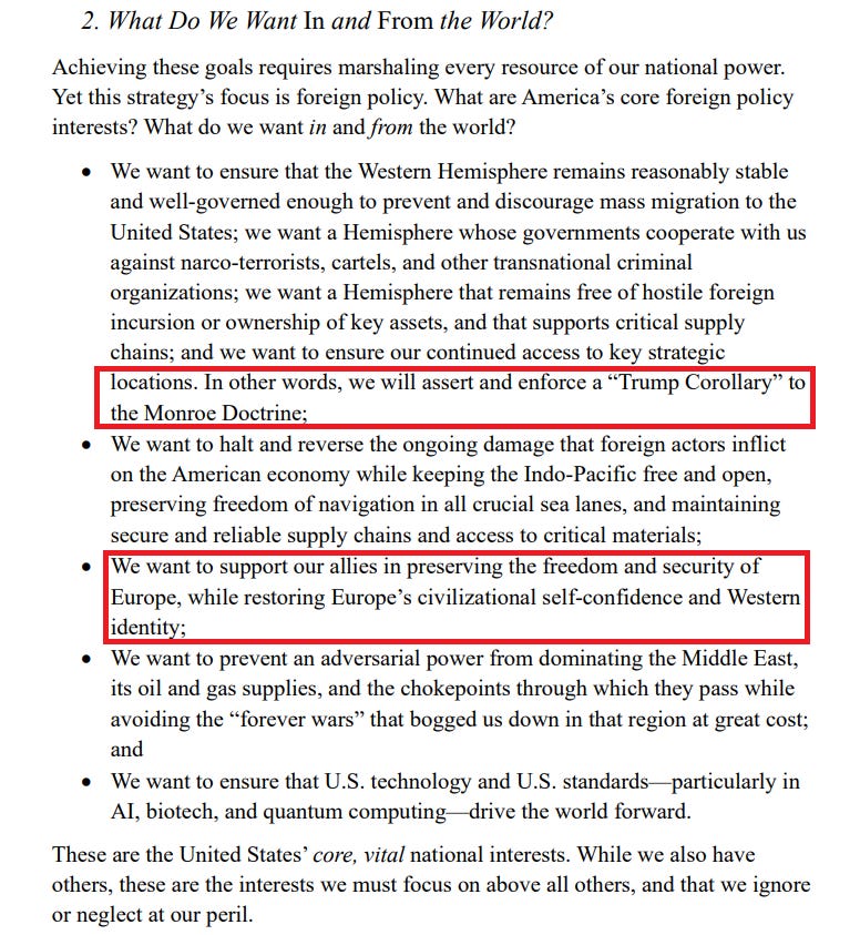 The first draft of the new US National Security Strategy 2025 said the USA would not only seek to use its power to assert regional (and not global) dominance, but would also circumvent the liberal internationalist bureaucracy of the EU and work directly with nationalist states like Hungary, Italy, Poland and Austria instead.