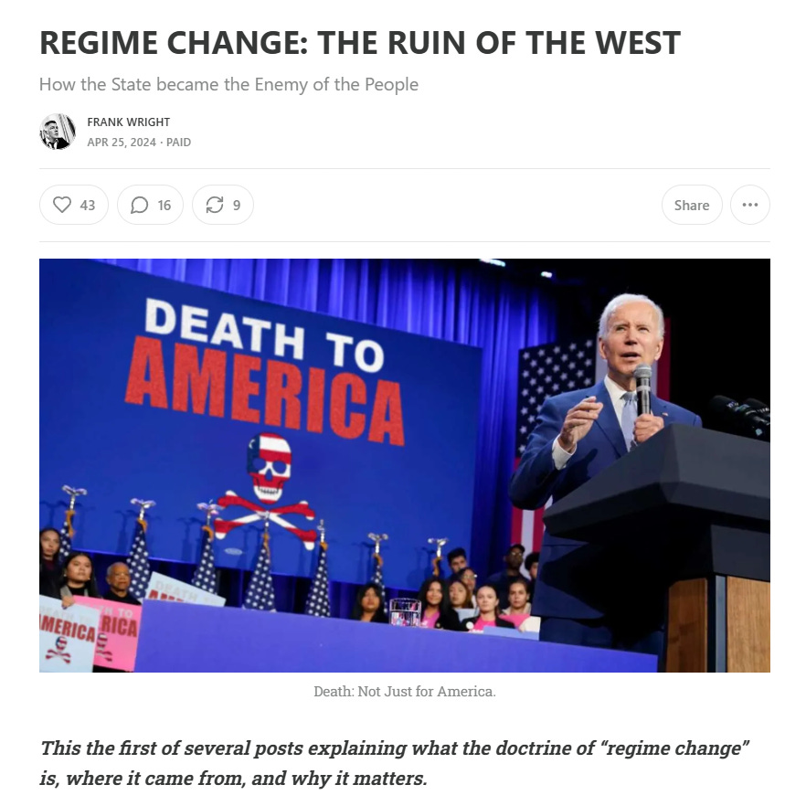 TLDR Social revolution and war to install liberal globalism = regime change. This is the legacy of the 20th century.