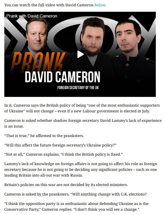 As David Cameron told two Russian pranksters - British policy on Ukraine is “fixed”, and a change of government will not change it.