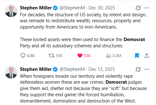 There is more to Miller than dank memes. He has repeatedly stated the goal of regime change through mass migration and the sponsorship of social revolution: to capture the US and the West for a permanent liberal state.