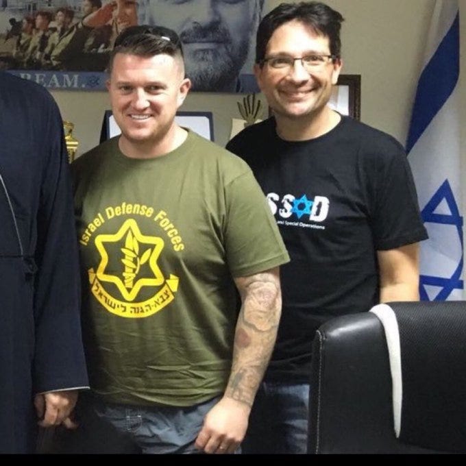 Here is Tommy Robinson wearing an IDF t-shirt.