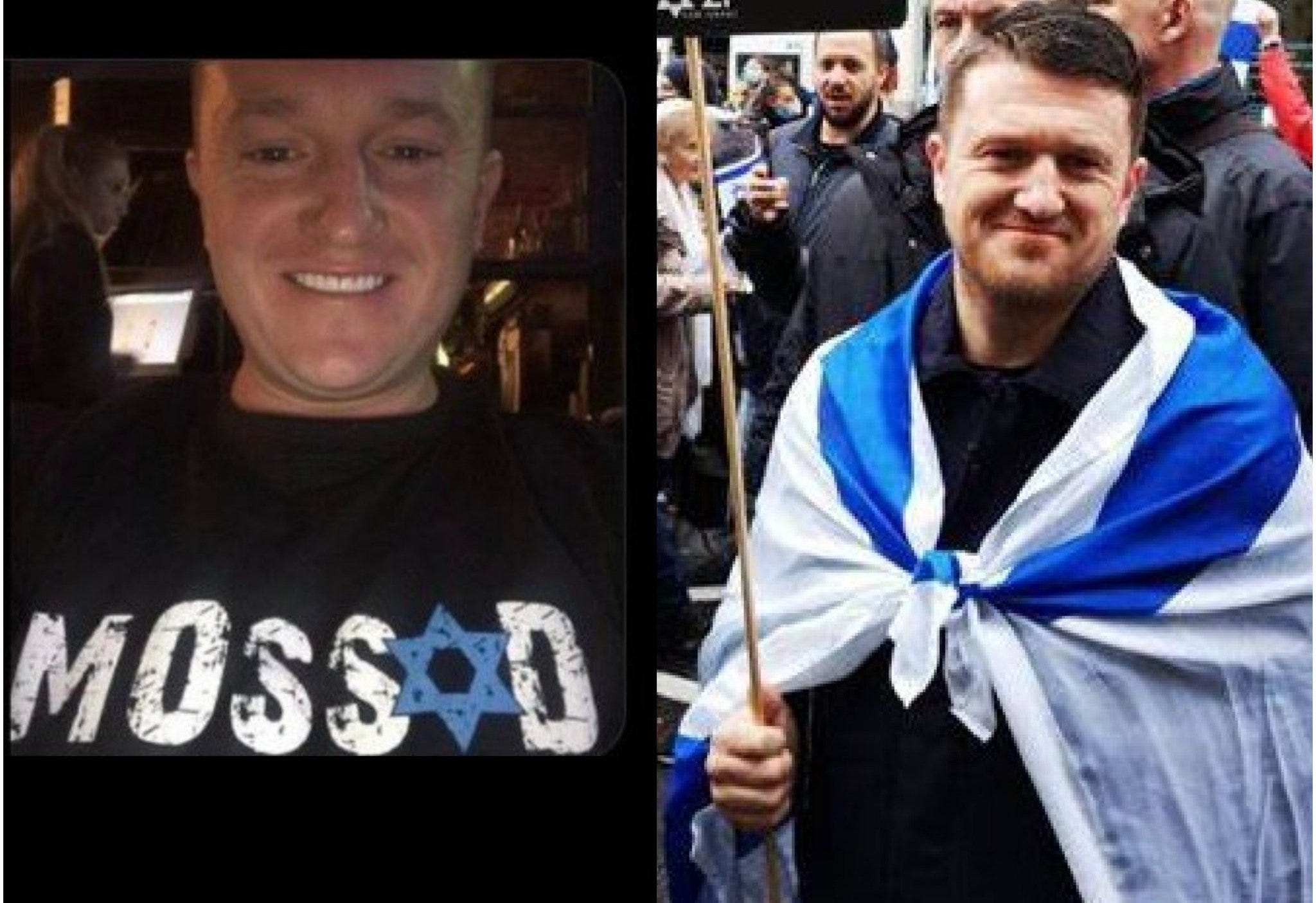 Here is Tommy Robinson proudly wearing a Mossad t-shirt4.