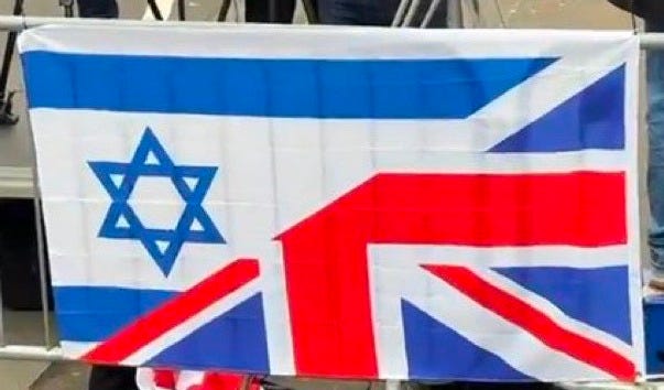 Israel is not and never has been our ally. Their flag has no place on our streets and anyone who displays it supports a state established through violent terrorism against the British people.
