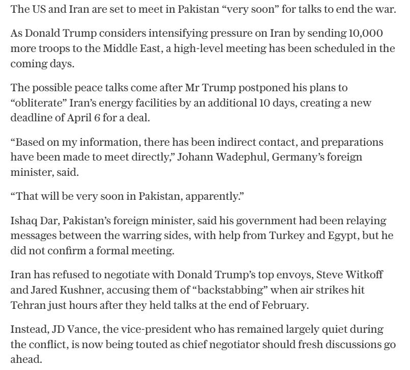 It is the Netanyahu government which is pushing Trump to initiate more strikes on the Iranian energy grid. This is the real objective, not “boots on the ground”.