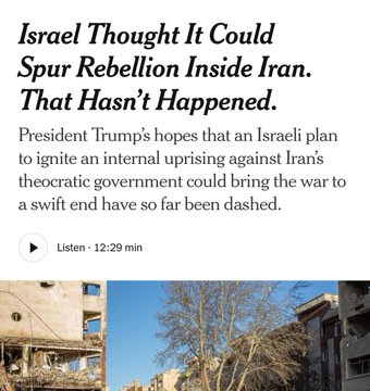 “Regime change” was always an illusion. It was never realistic, the Israelis reported in January that the Iranian state was resilient and would not be destroyed by assassinations, protests or aerial bombing.